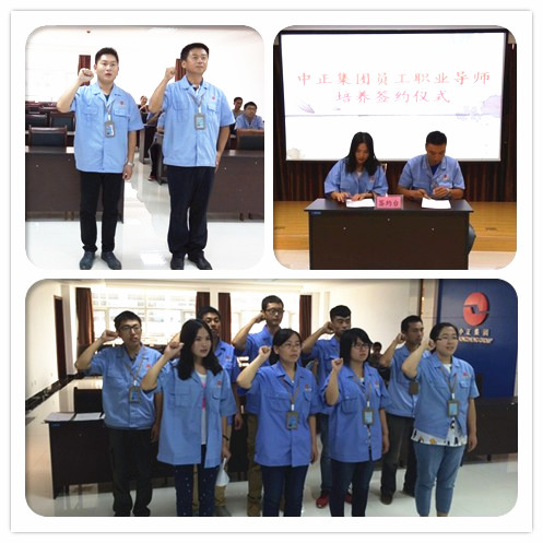 2015年9月8日上午8:30,集團(tuán)駐地舉辦了員工職業(yè)導(dǎo)師培養(yǎng)簽約儀式和干部員工宣誓儀式。工程公司3名新員工與導(dǎo)師正式簽約。集團(tuán)駐地9名干部員工面對司旗,莊嚴(yán)宣誓:忠誠集團(tuán)事業(yè),秉承集團(tuán)宗旨,弘揚集團(tuán)精神;團(tuán)結(jié)協(xié)作、努力進(jìn)??;全心全意,爭先創(chuàng)優(yōu);為興我中正,而竭盡全力。